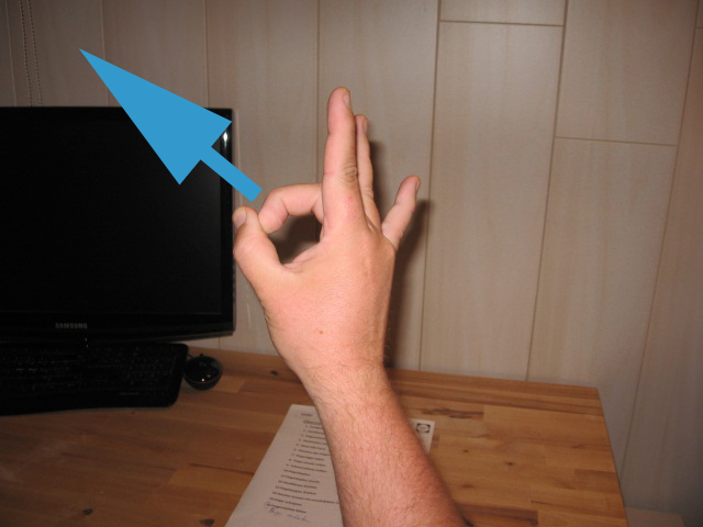 Für diese Übung verbindest Du abwechselnd jeden einzelnen Finger deiner Hand, mit dem Daumen. Mit dem Einatmen drückst Du den Finger nach außen, wie wenn Du ihn wieder strecken wollen würdest, gegen deinen Daumen. Der Rest erfolgt im oben beschriebenen Atemrhythmus.