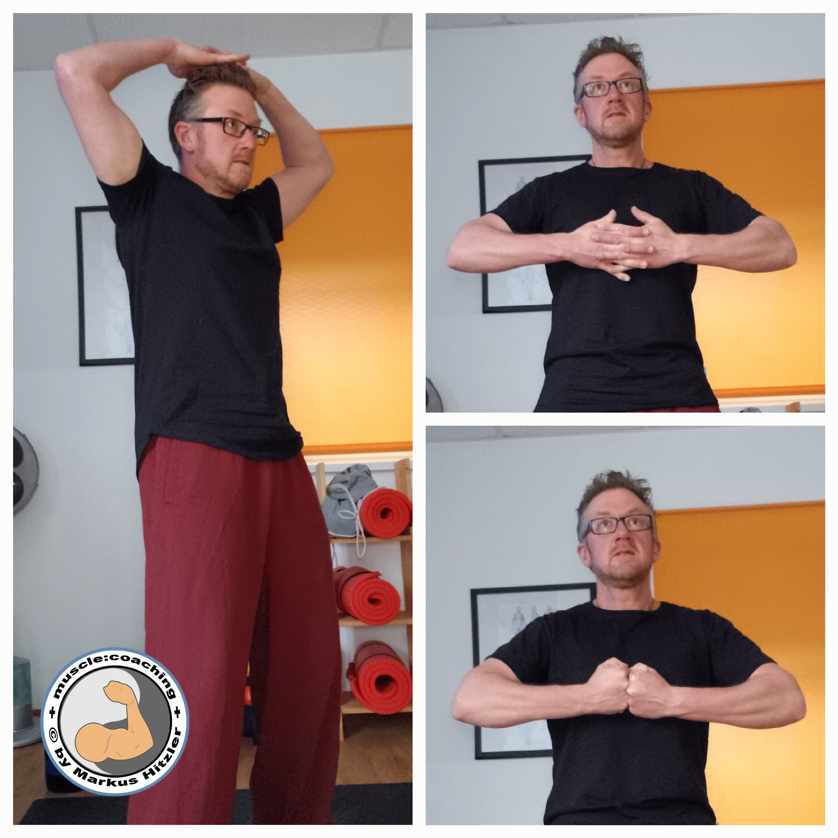 Hier eine kleine Collage der Übungen für den oberen Körper, damit Du siehst, wie simpel die Übungen sind: